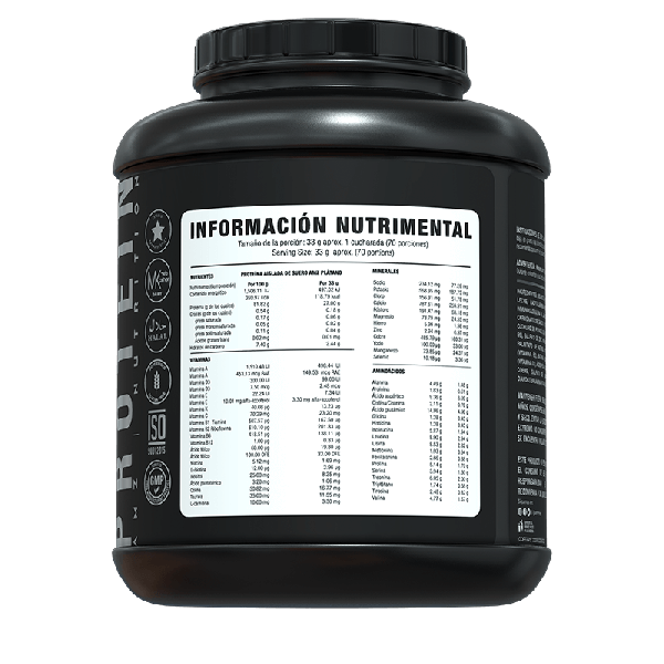 Proteína 27g - BCAA´s 5g - Azúcares 0g - Inositol 8.2g - Taurina 11.5 mg